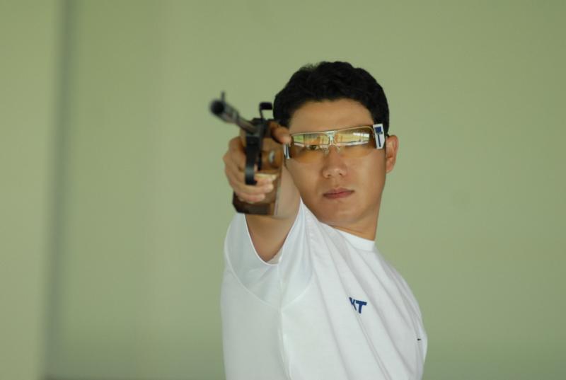 ) con todos sus accesorios (tapaojos, diópter, filtros, etc.) hasta el que tira con los dos ojos abiertos y sin llevar nada en absoluto. Y todos tiran estupendamente. Personalmente, algo que yo encuentro de utilidad (sobre todo en las competiciones) es el uso de pantallas laterales en las gafas específicas de tiro, o mismamente en las graduadas normales como las lleva el campeón surcoreano Jin Jong Oh.