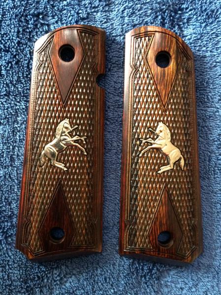 Esas que tengo en la pistola en las fotos son de madera y finas. Son las originales.