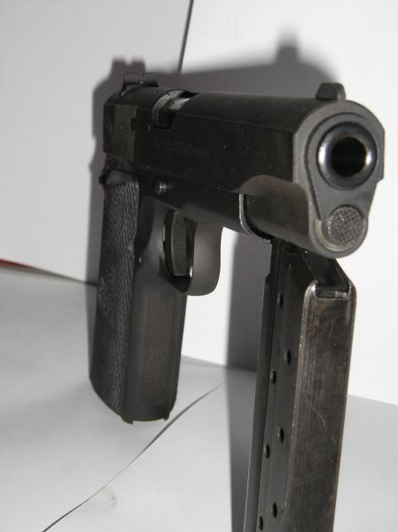 Así que ahí van algunas de mi Colt 1911 A1, fabricada para la US Army en 1.943. Por cierto, el único punzón de banco de pruebas que lleva es el de EEUU. La compré en Alemania, por lo que supongo (repito, supongo) pudiera ser alguna de las capturadas a los USA durante la II G. Mundial.
