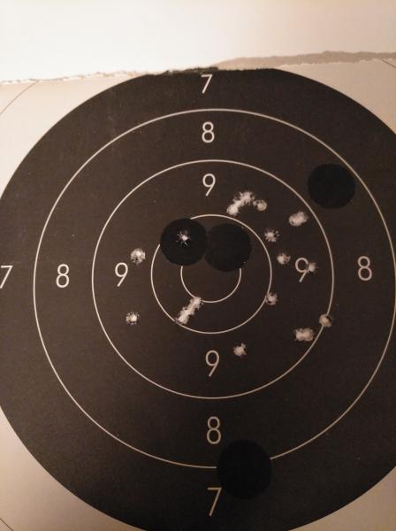 Reincidente escribió:Novatin escribió:Reincidente escribió:Me falta mucho entreno para hacer dianas buenas, más que nada es para mostraros algo curioso. Hay 30 disparos, 25 son con 38 Spl Wadcutter Fiocchi, y 5 son con 357 Magnum Magtech. Los 357 Mg. son los impactos no perfectamente circulares en el 7 a las 11 y un flyer en el 9 a las 12.