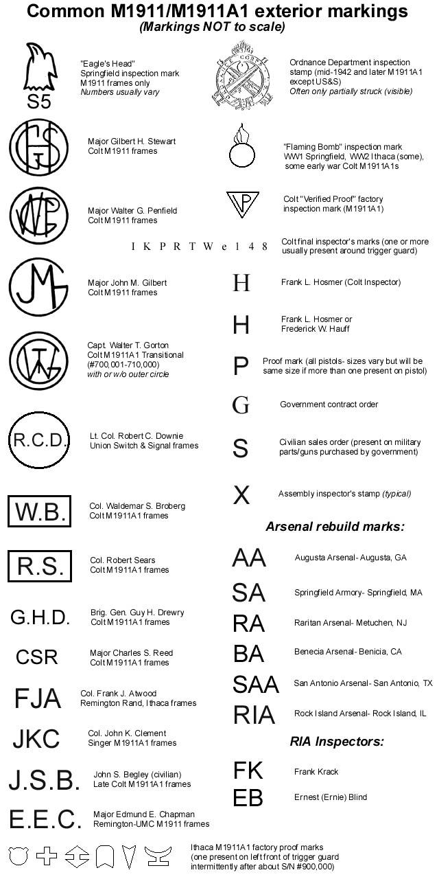 Adjunto el significado de las marcas exteriores en las COLT 1911.