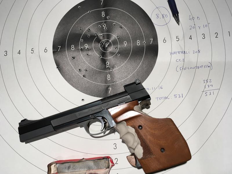 Carlos250 escribió:Hola compañeros,hoy hemos entrenado un rato con la Hammerli sin el contrapeso "chapucero" que le había puesto y ha ido bastante bien, ya estoy dudando si es mejor con o sin contrapeso, he hecho 30 d. En blanco vuelto y luego una tirada de Standard completa con el Pistoltimer", no es lo mismo que la realidad pero bueno para entrenar ya va bien, aunque estar pendiente del tiempo es jodido, al final 531pts. En una tirada real en los 10" creo que algún tiro no hubiera entrado,bueno esto podría escribirlo en el hilo "entrenando para novatos" que ya me lo he leído todo, jajaja,pero sé que os interesa lo que hace la Hammerli.He aprovechado para tirar con mi revólver 586 y municion 357magnum pero a los 10 tiros ya me dolía el hombro y lo he dejado, hay bastante diferencia a tirar con el 38WC, a una mano te destroza, esto para hombres jajajaja.Ahi os pongo los blancos del entrenamiento en fotos. :birra^:
