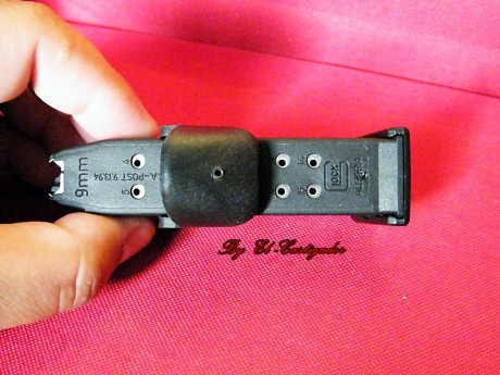 Ahora unas fotos con el cargador original más el acople de +2 que hace que sea un poco más largo el cargador, las fotos se han hecho desde varios angulos.