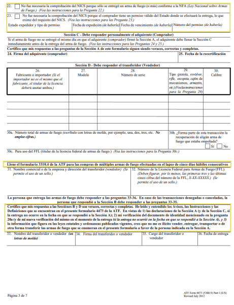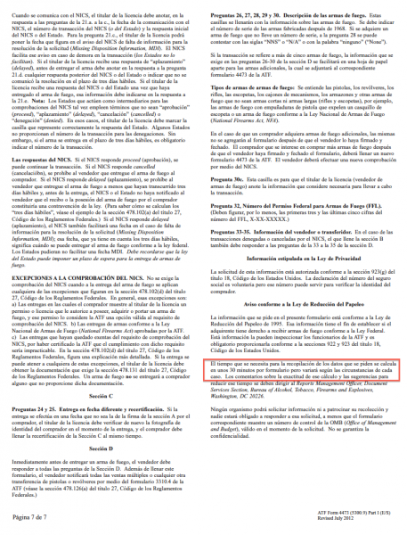 Este documento se envia al ATF, y el armero introduce en el ordenador de la base federal NCIS o Estatal, los datos del comprador.