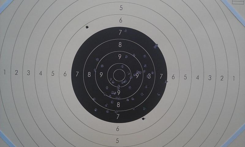 Por si sirve de referencia, este blanco lo hice entrenando hace un rato, con el carro de 22 de mi xfive, ya que la galería de 9mm estaba ocupada por una competición.