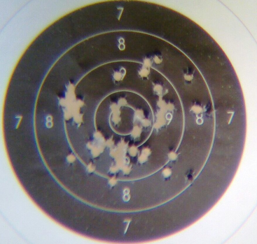 Verdaderamente, con este calibre (.30 Luger), se "adivina" mejor dónde ha ido el tiro que con el 9 Para. Es un calibre muy "agradecido" que yo recomiendo para aquellos que recargan y que, como yo, se han dicho: "Lo que no sea capaz de hacer con una pistola de verdad, me importa un pimiento". Esto último lo dije cuando al poco tiempo de comprar y utilizar una Walther GSP Expert en .32 WC, me resultó una pistola "de matar marcianitos" y de soltar "peditos de monja" en lugar de petardazos mínimamente decentes, aunque cada gusto y preferencia ha de ser igualmente respetado.