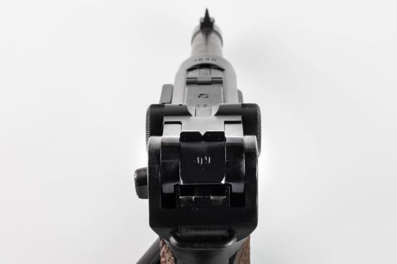 Luger p.08 Alemana del tercer Reich ,código 42 de 1940 en la parte derecha de la corredera dos marcajes de aceptación Wuffenamt SE655 de Mauser ( Stick Eagle - Águila de alas rectas )