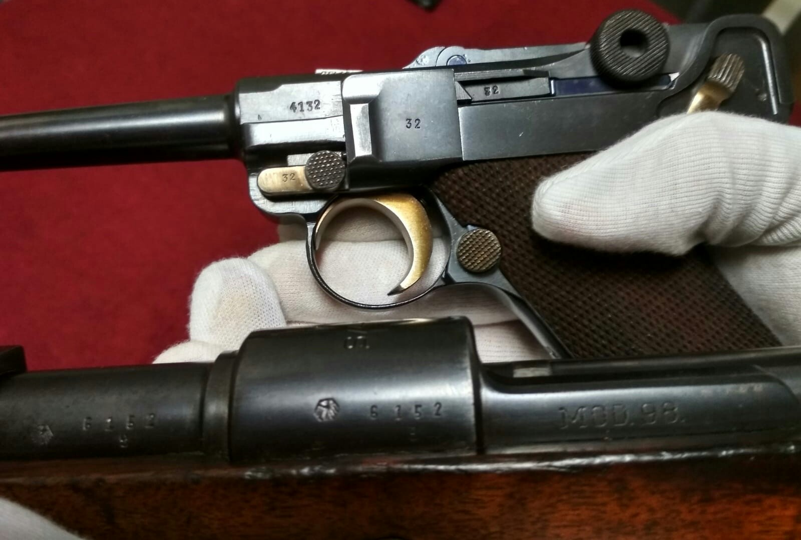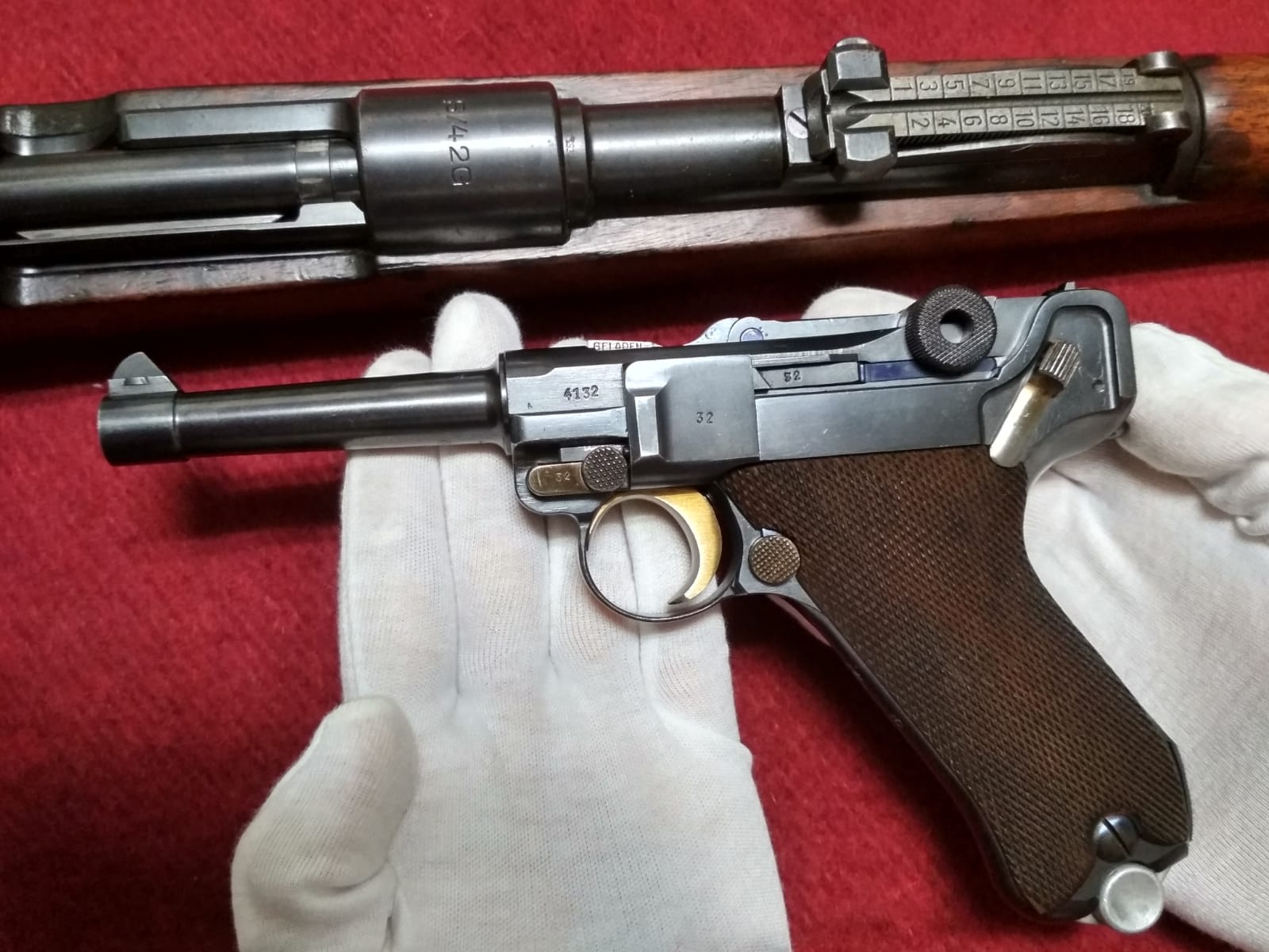 Karlosky escribió:Buenas a todos os muestro una de mis niñas, perdonar la calidad de las fotos, de 1937, y menos el cargador y la estractora todo coincidente, y en bastante buen estado, tambien os pido ayuda, encima del gatillo tiene unos marcajes de los que no tengo ni idea, a ver si alguien me puede decir algo. Gracias a todos. Saludos.