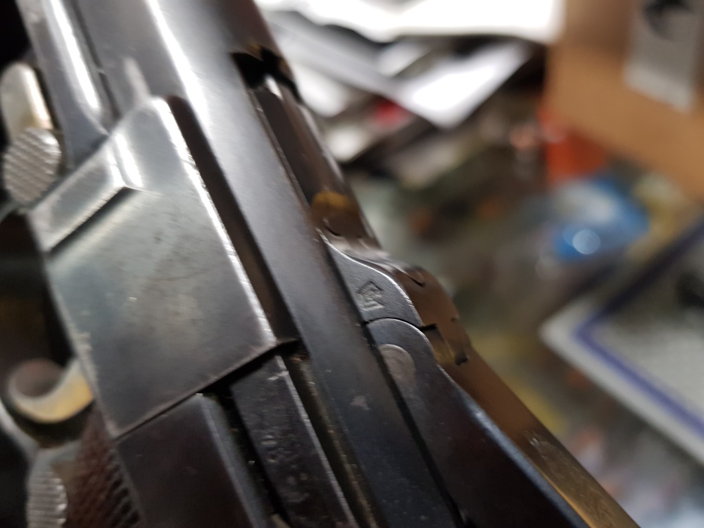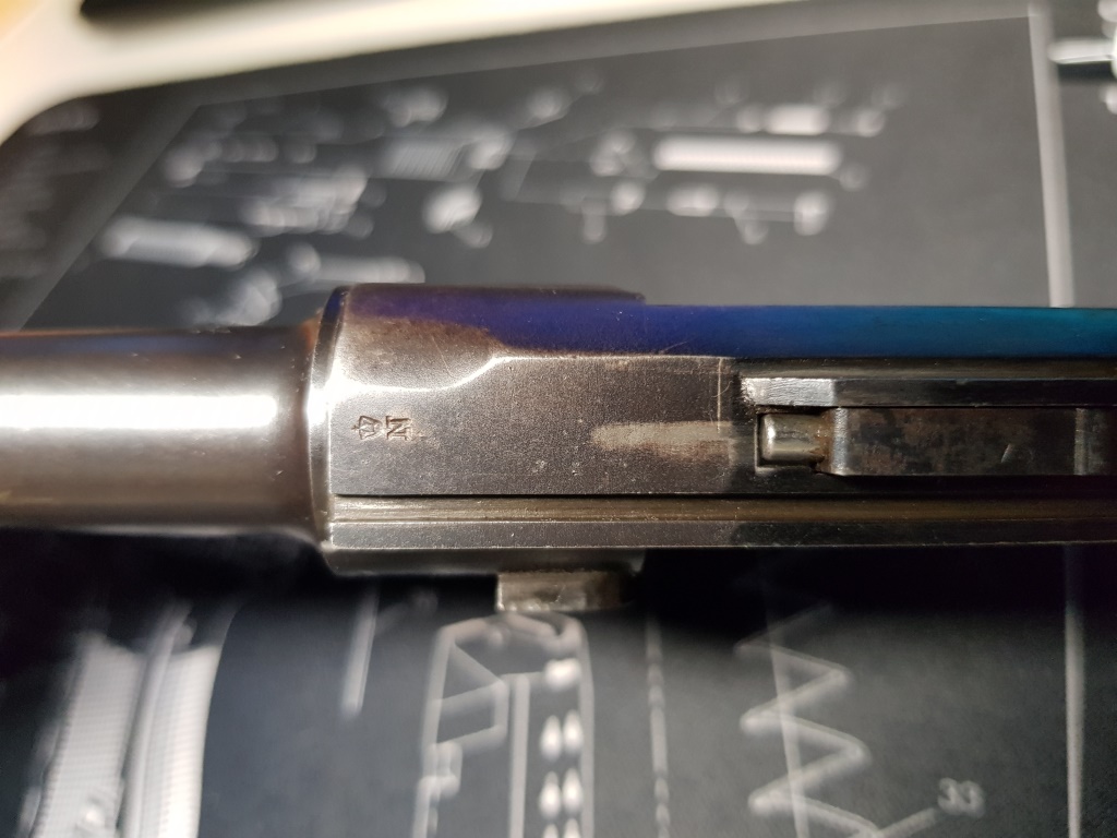 Si no me equivoco es una p06 de DWM destinada al mercado civil. El taco de madera del cargador concuerda con la época. Lo que desconozco es el significado del marcaje de la parte trasera, seguro que algún compañero experto desvela el misterio.