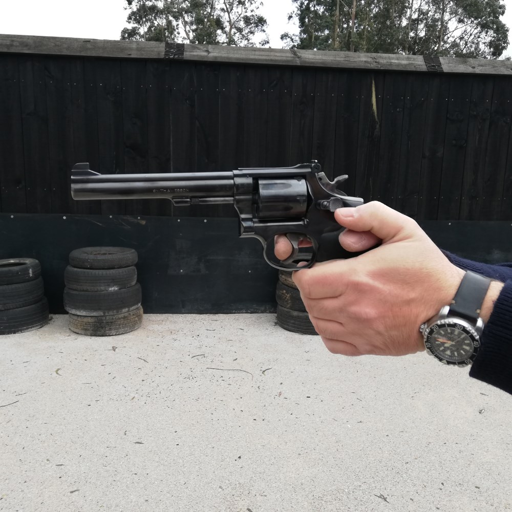 El problema que tiene el revólver es que no tiene garganta salvo que le ponga uno cacha anatómica. Claro, que para IPSC no vale.