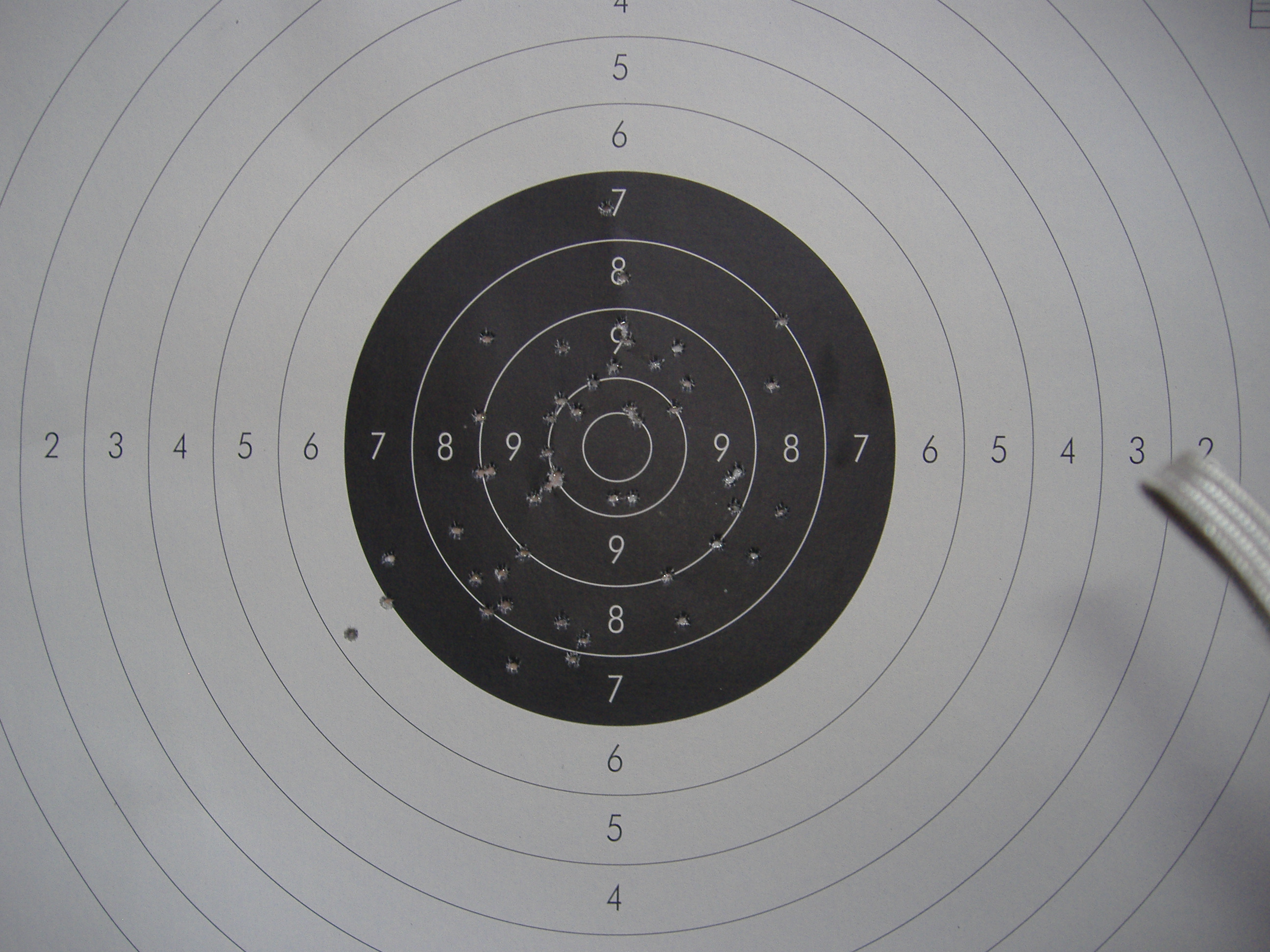 Hola Tomate,te pongo una diana, por si haces el favor de valorar que hago mal,empiezo fenomeno,pero segun sigo tirando,los impactos se van al 8 y 7 porque puede ser.