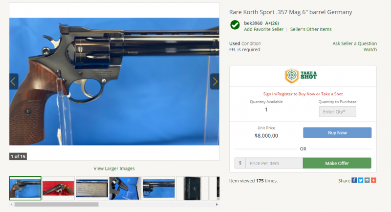 Precios de armas Korth usadas en subasta, un verdadero articulo de lujo, a precios astronómicos.......