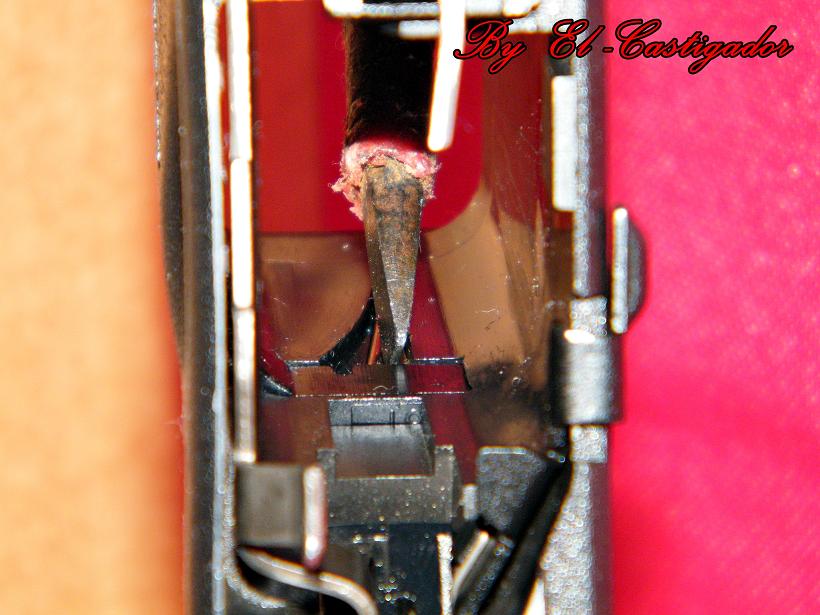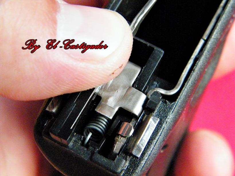 Como se puede ver la palanca del diparador está unida al mecanismo de disparo por un muelle que es muy facil de quitar.