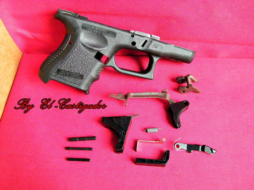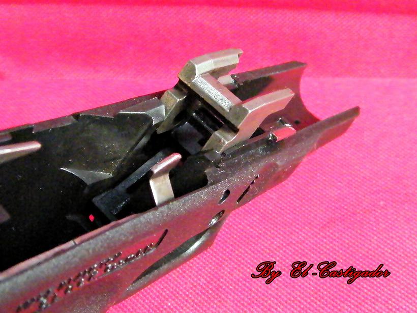 En esta se puede ver el agujero para regular el tornillo allen y dejar a nuestro gusto el recorrido muerto del gatillo.