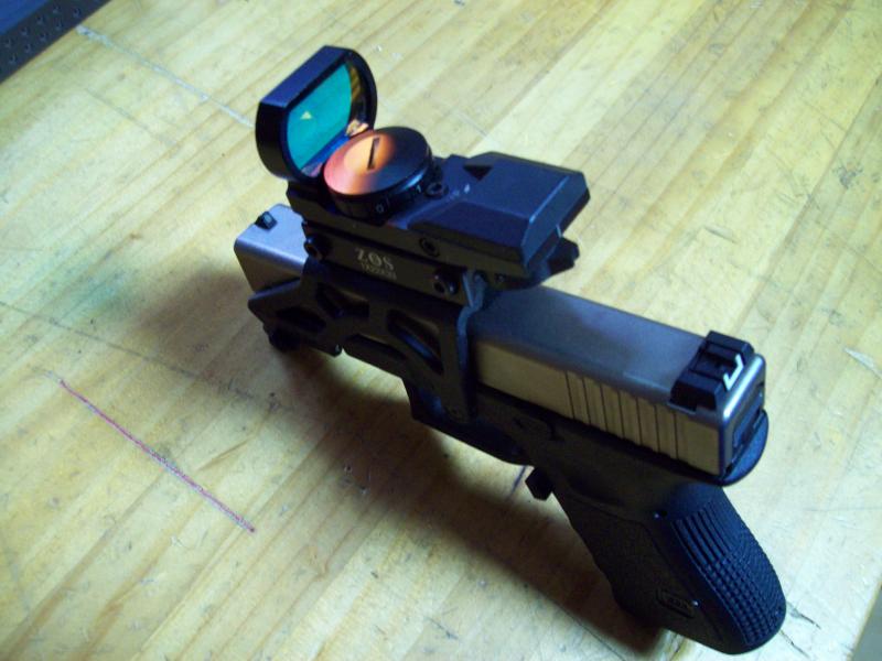 Aqui os dejo mi glock 19, tiene base israelita (no me acuerdo el nombre y un visor de los normales. Con ella pense competir en Modificada pero cuando fui a mi antigua federacion (no me dejaron) y tuve que competir en Open, ese año quede Campeon, no por bueno sino porque habia pocos tiradores de Open, solo tuve un miss. Si os fijais la base de la montura esta comida (lima a fondo) para que entre eun funda de competicion. Ventaja cuando se funde la pila del visor puedo apuntar con las miras originales y nadie nota nada. Ahora ya esta apalabrada la venta pero me lo he pasado de muerte con ella. La echare de menos. Esto demuestra que con poco dinero se puede competir en Open, eso si sin aspiraciones a nivel nacional pero para divertirse un monton. La acompaña dos cargadores de 15, dos de 17 y uno de 33. Si el que me la apalabro se echa pa tras. La pondre a la venta aqui el año que viene. ¿que os parece? Un saludo :pist: