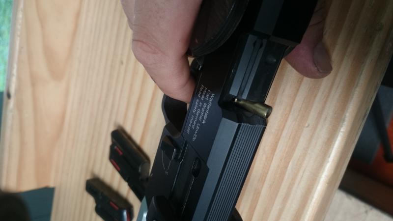 Y otra bala quedo solo con el plomo metido en el cañon,lo demás quedo fuera del cargador,pero sin entrar a tope en el cañon