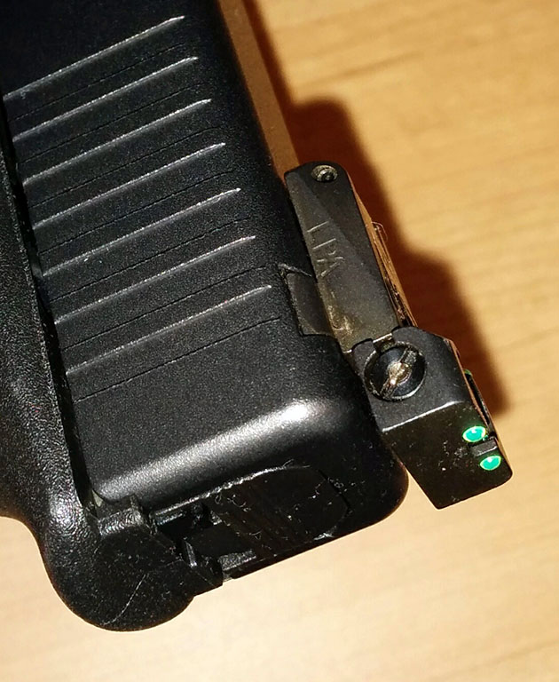 tengo una Glock 17 a la que le tengo puesta miras LPA de fibra óptica (tanto punto como alza) y es lo mejor que he probado, queda tal que así: