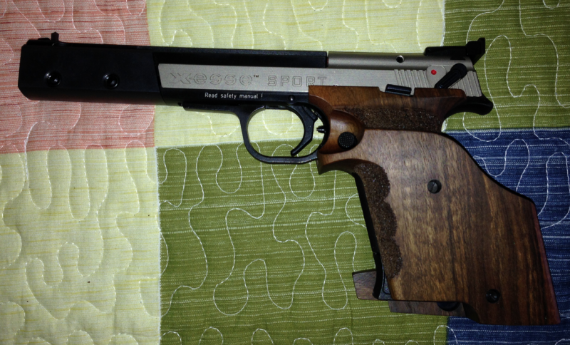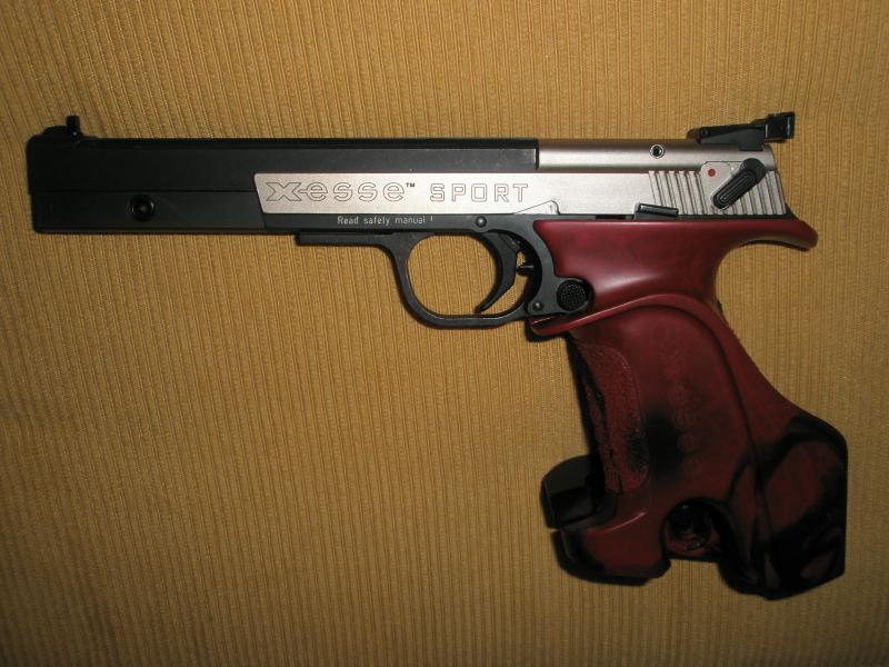 Bueno, voy a mostrar la que fue mi primera pistola, que vendí hace tiempo, era una Hammerli X-ESSE con cachas Nill y contrapeso de 165 gramos. Saludos y animaos a enseñar las vuestras