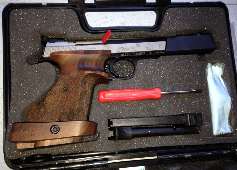 Aquí os enseño mi maravillosa Hammerli International,la compré de segunda mano pero casi sin uso, no la cambio por ninguna de las de ahora como Pardinis o Morinis,entrenando le saco 540 puntos en Standard, aunque en competición menos, pero eso ya es por culpa del tirador, jejeje.Espero seguir mejorando y poder darle caña a pistolas más modernas, jajaja.Ya no se fabrican armas con estos materiales casi indestructibles, no he tenido una sola interrupción en más de 12000 disparos y aunque no la limpie después de 1000 tiros sigue haciendo dieces, probar a hacerlo con otras armas a ver qué pasa, si encuentro otra en buen estado la compraré para tener repuestos en el futuro.