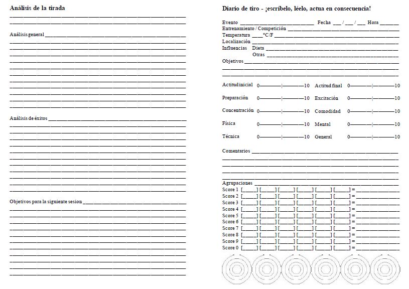 Ahora me estoy haciendo una plantilla de tiro para anotar todo esto, durante competiciones y entrenamiento.