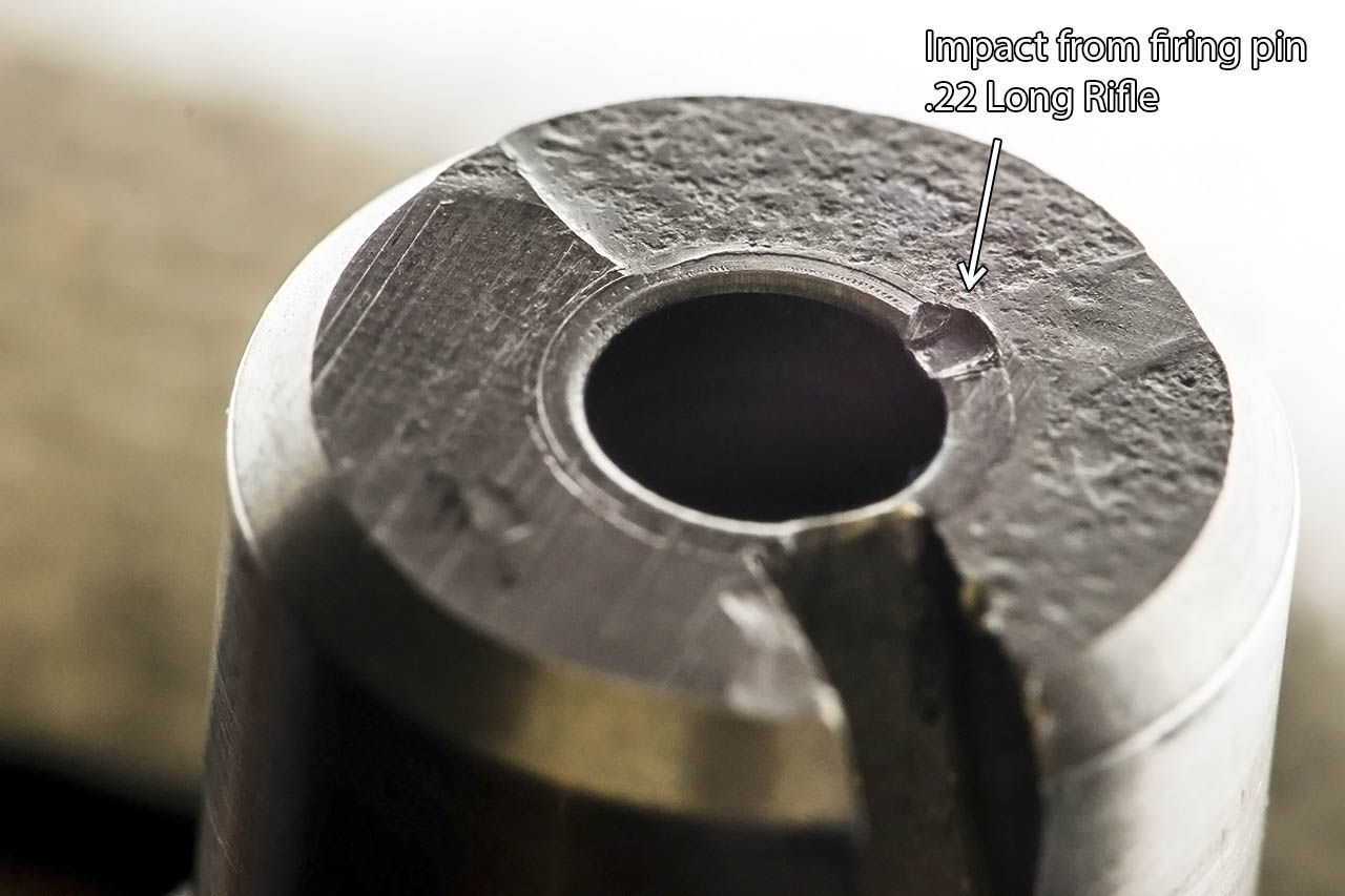El plano de la recamara del cañón, justo donde donde golpea la percutora, no esta deformado de pegar muchos tiros en seco, y a salido una pequeña rebaba que roza contra el cartucho, e impide que este entre con facilidad???? Es un problema muy corriente en las armas del 22 LR, por tirar en seco, y que se soluciona con una lima redonda y cuidado, para dejar de nuevo cilíndrica la entrada de la recamara.............