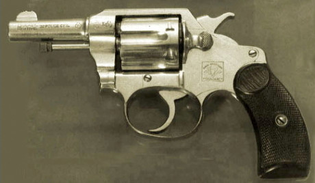 Hola compañero, personalmente creo que se trata de un revolver marca Tanque, modelo Pocket Positive, fabricado a principios del siglo pasado en el País Vasco y basado/copiado en el Colt Pocket Positive, aunque el punto de mira tuvo que ser modificado en algún momento de la vida del arma. Un saludo