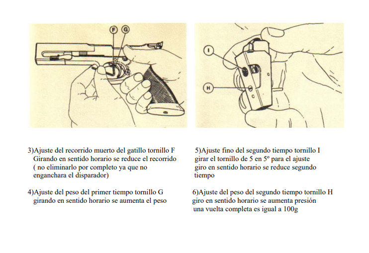 manolosolo escribió:Novatin escribió:manolosolo escribió:El peso del disparador, es el tornillo H, y lleva tambien un tornillo de ajuste fino I.