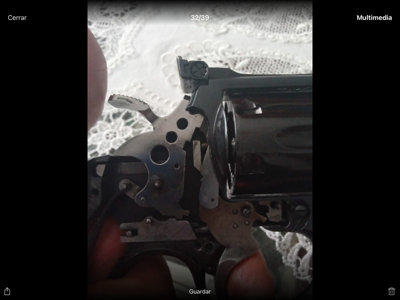 Como muestra, y poniendo vaina ya percutida, tres revolveres Sw, un 14, un 38/44 outdoormans y un Victory mios, y ninguno pega. Todo revolver bien diseñado esta concebido para que martillo no muera en armazon, y ojo, es la razon por la que no debemos disparar en vacio, porque machacamos armazon, no solo aguja.