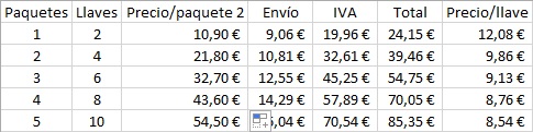 Con el envío económico a España (unos 15 días), los precios quedarían así (varía céntimos arriba o abajo, supongo que por el cambio €/$):