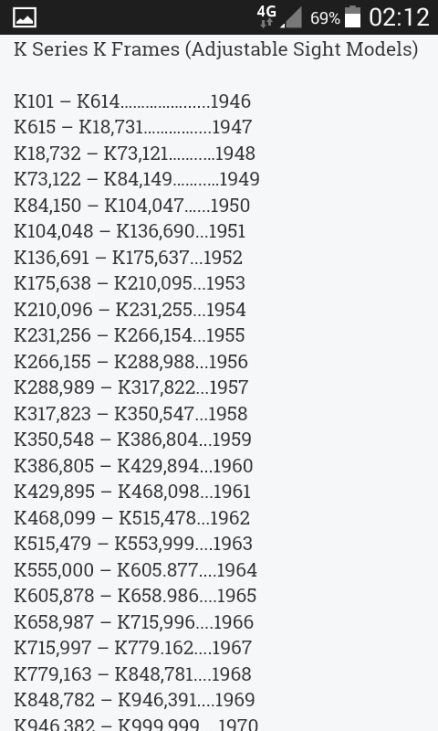 Una vez vi una tabla en un foro de SMITH&WESSON de USA donde tría los años de fabricación y los números de serie, pero le perdí la pista hace mucho. SI la vuelvo a encontrar la pongo aquí.