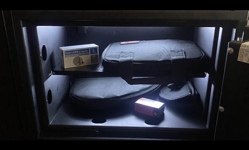 Tal y como os había dicho le he instalado unas luces al armero de manera que se pueda ver el interior con cierta claridad… ahí va la foto… lógicamente se encienden al abrir y se apagan una vez cerrado… por movimiento…