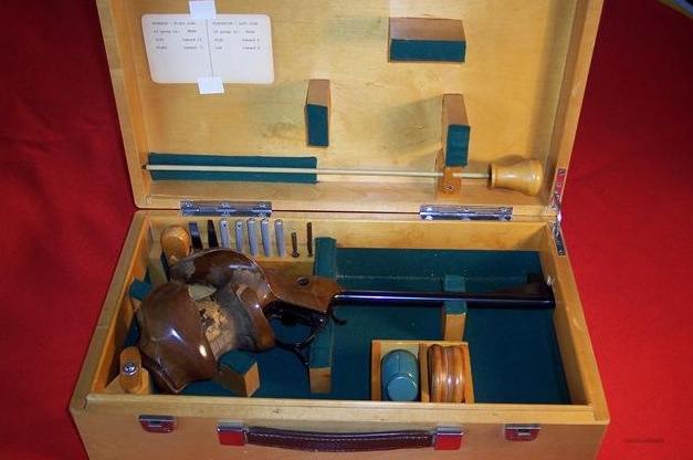 Este otro extraordinario tirador no llegó a ostentar en ningún momento el récord mundial de Pistola Libre, pero como si lo hubiera hecho. Se trata del alemán Harald Vollmar, que estando en vigor el récord del suizo Minder, en una competición internacional en la ciudad alemana de Suhl en 1.979 logró 581/600 puntos, no dándosele validez a esta marca como récord al no haber sido conseguida en Olimpiada, Campeonato del Mundo o de Europa. Mirad a ver si reconocéis la pistola que utilizaba.