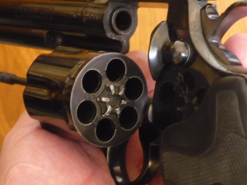 Tercero fijate que este en perfecto estado de consevacion, y en los engranajes del tambor son muy rigidos y no suelen sufrir con un uso normal, tambien fijate en los alojamientos del tambor para los proyectiles pues cuando se dispara municion 38 Wanc se queda una marca en el tambor al ser la vaina mas corta que la de 357 para la cual fue diseñado.