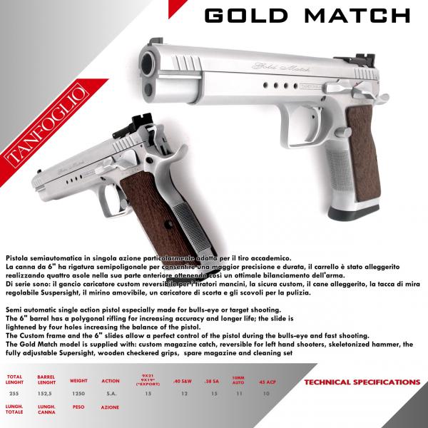 mas especifico para precision es la Gold Match, con disparador de accion simple y cañon poligonal de 6 pulgadas. Los modelos Limited pueden servirte para precision si prefieres armas de 5 pulgadas de cañon, pero fueron concebidas mas para recorridos de tiro.