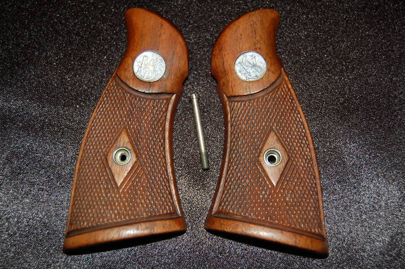 Navegando por Internet me ha sorprendido encontrar en Ebay USA, dos ofertas de empuñaduras de revolver Smith Wesson, a precios exorbitantes. Las ofrece un profesional y justifica el precio por la alta demanda de ambos modelos, ya antigüos y difíciles de conseguir.