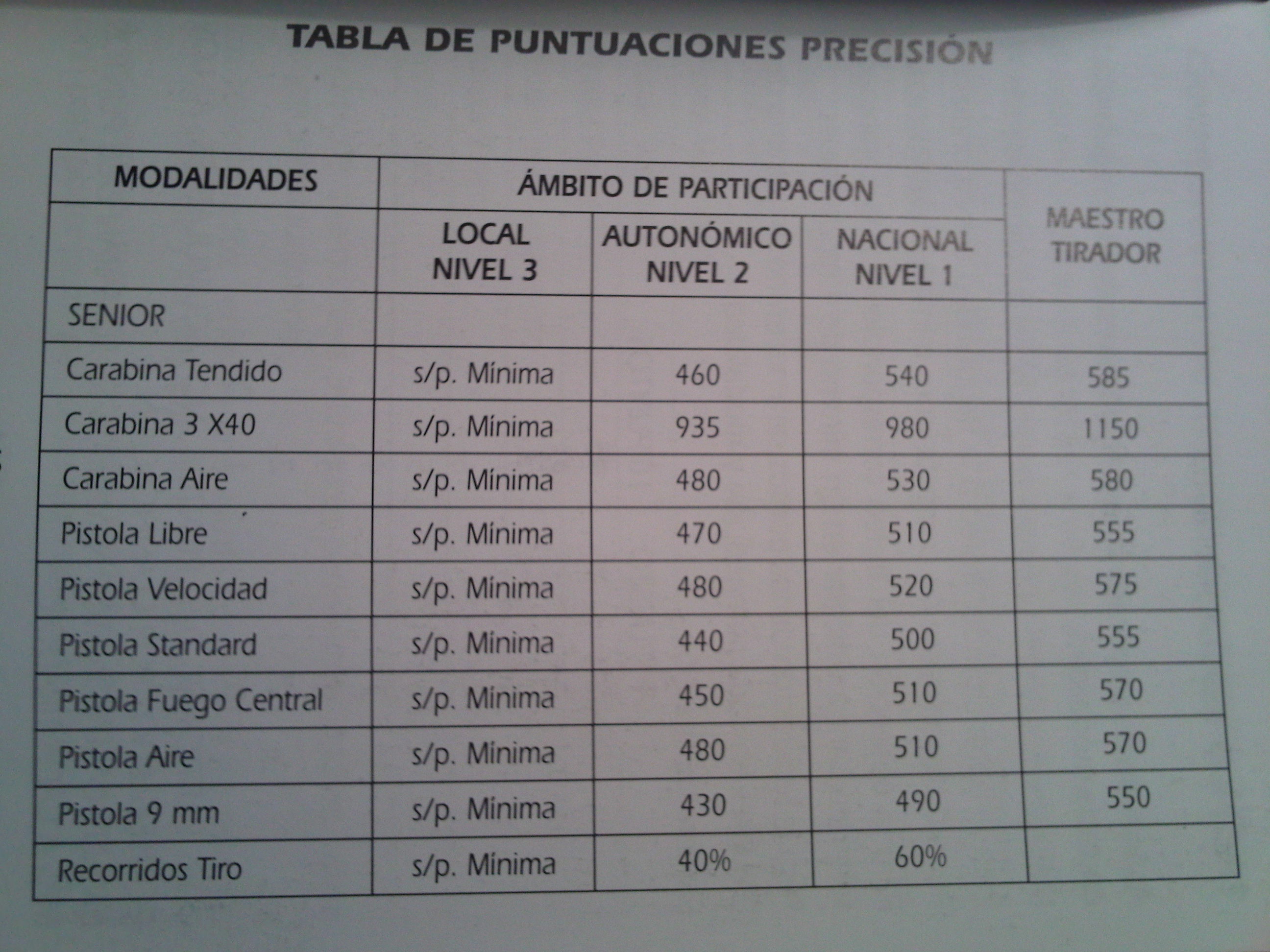 En Galicia son 430 en Pistola de 9mm, 440 puntos en Pistola Estándar, 450 en Fuego Central y 470 en Pistola Libre.