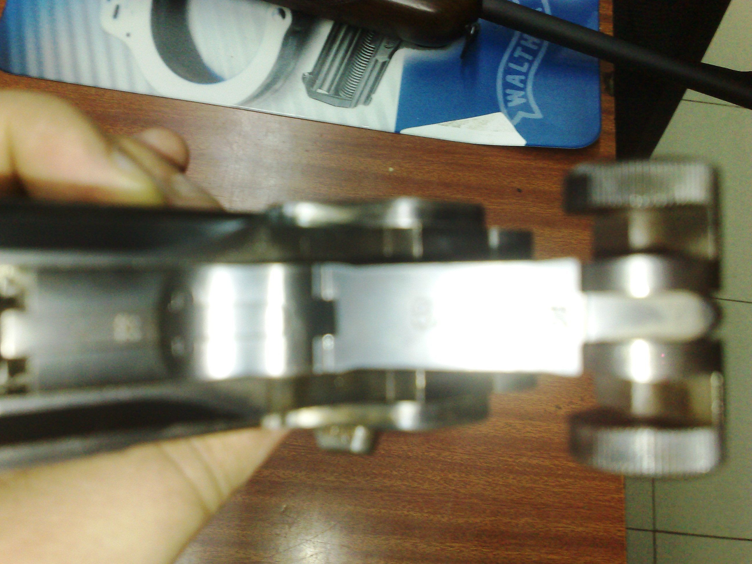 La cuestión es que me gustaría saber algo más de esta pequeña maravilla. Perteneció al padre de mi amigo, Oficial del Ejercito de Tierra español, el cual la tuvo muchísimos años, hasta que se la transfirió a su hijo, a la sazón mi amigo. Parece ser que es la versión que utilizó la Luftwaffe, por el cañón más corto que las que usó la Marina Imperial del Tercer Reich. La información que me han facilitado es que las numeraciones de las piezas coinciden, por lo que se trata de una pistola original "entera", no de las que se construyeron en los años 40 en España "canibalizando" varias pistolas, con lo que las numeraciones diferían. Parece ser que todas las piezas son originales, a excepción de un pasador que se rompió y que fue sustituido por uno fabricado al efecto por un armero militar en los años 70.