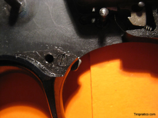 Vuelve a meterlo en la ranura y regúlalo de manera que el disparador suelte el martillo y tenga un poco de recorrido todavía, después aprieta a tope el tornillo.