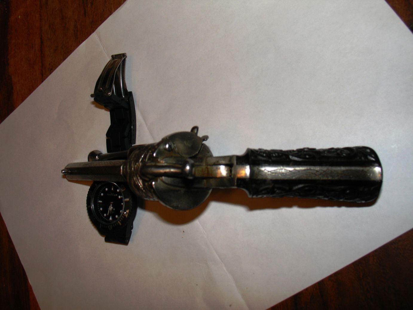 Por cierto, cuelgo otra foto más, está vez el de armazón cerrado acompañado por tres proyectiles de 7mm lefaucheux