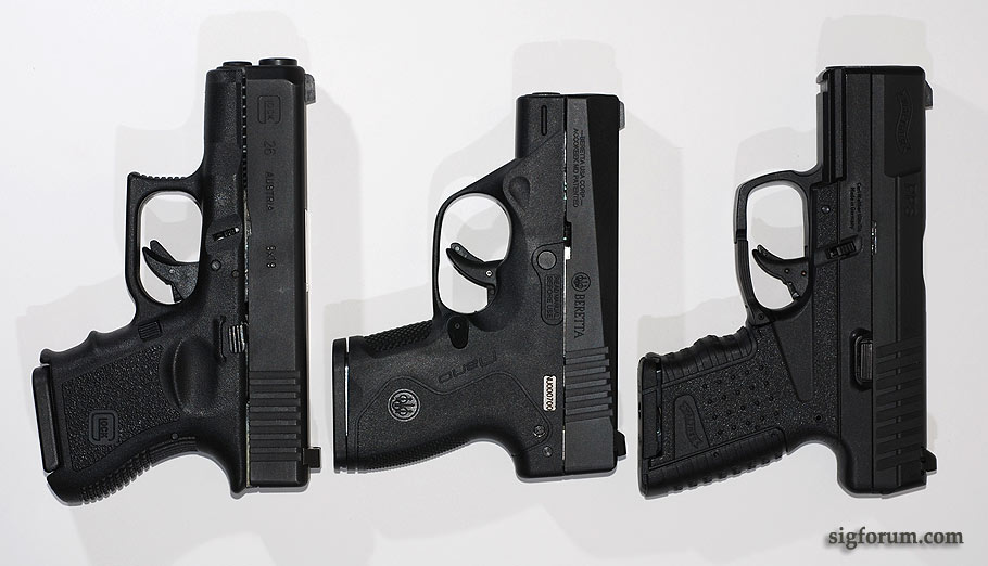 pues me baso en que todas las armas de la encuesta excepto la Glock-26, son pistolas, además de compactas(de longitud) mucho más finas (slim) que la Glock-26 que si bien en longitud es similar, el grosor es mucho más considerable. A la Glock-26 se le puede comparar por dimensiones con otras compactas, Beretta Storm c, M&P9 compa, p-99 c, Steyr c, etc pero nunca con las "slims". Es mi opinión.