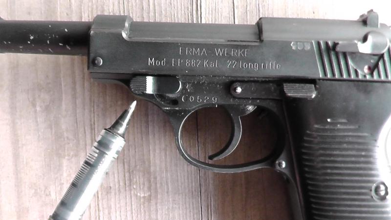 El arma es de la marca ERMA WERNE. Modelo EP 882.
