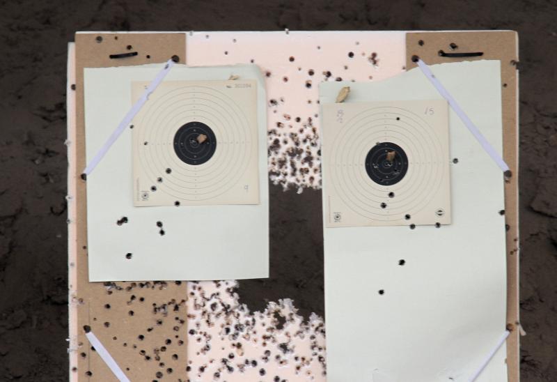 Hay 10 impactos en cada cartulina y los blancos son para aire comprimido.