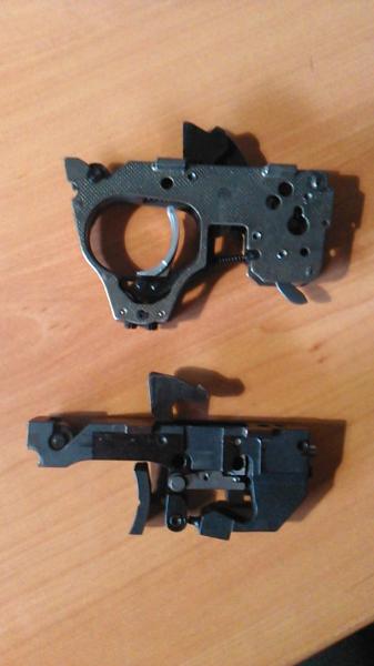 Me sumo a lo dicho antes, el antiguo disparador, para mi, es mejor que el nuevo o al menos mas facil de manipular, a la hora del disparo si esta bien regulado es una delicia, del moderno no puedo decir lo mismo. Con ese antiguo que tienes regulado a algo mas de 1 kg tienes lo que necesitas y el otro lo puedes llevar de repuesto a las tiradas.