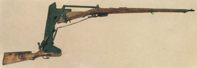 En cuanto a las fotos que adjuntas de los periscopios de trinchera acoplados a armas, decir que España también contó con algún ejemplar de factura propia. Lo que no había visto nunca antes (O no me había fijado lo suficiente) es uno como el de la segunda foto, que permite repetir el disparo (Al menos en teoría) sin desencarar el arma.