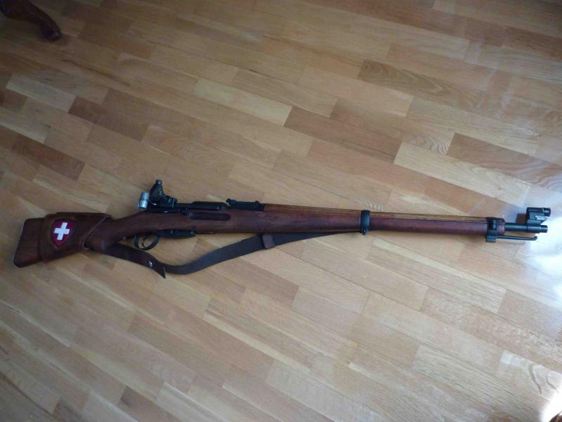 Hola a todos. Subo fotos de mi nuevo K31 con el diópter y la carrillera de cuero instalados. Por la numeración está fabricado en 1943 aunque parece estar totalmente restaurado de arsenal (lo compré ya en este estado). El cañón está absolutamente perfecto y el resto, pues juzgad vosotros mismos. Con munición comercial PVRI no se sale del negro a 100 metros tirando con el diópter instalado, sin apoyo ni uso de correa.