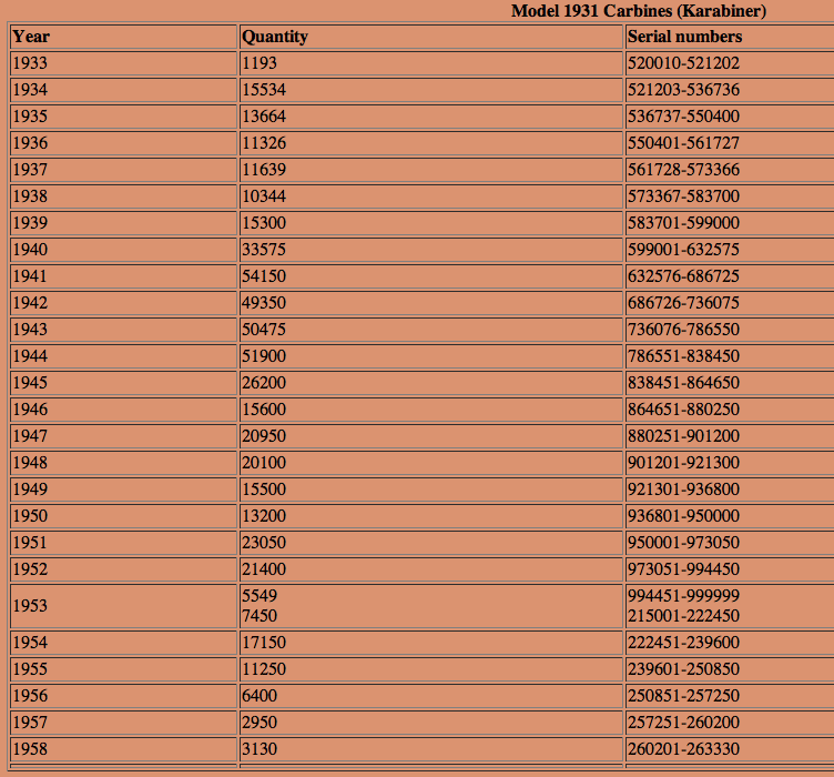 Para consultar año de fabricación por número de serie de los fusiles suizos: