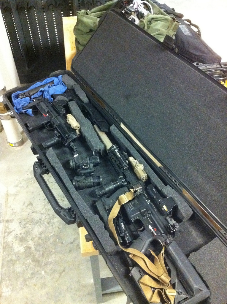 Por cierto, puede que las usaran hace tiempo. Foto de la maleta con equipo de un SEAL, mirad encima de la HK MP7.