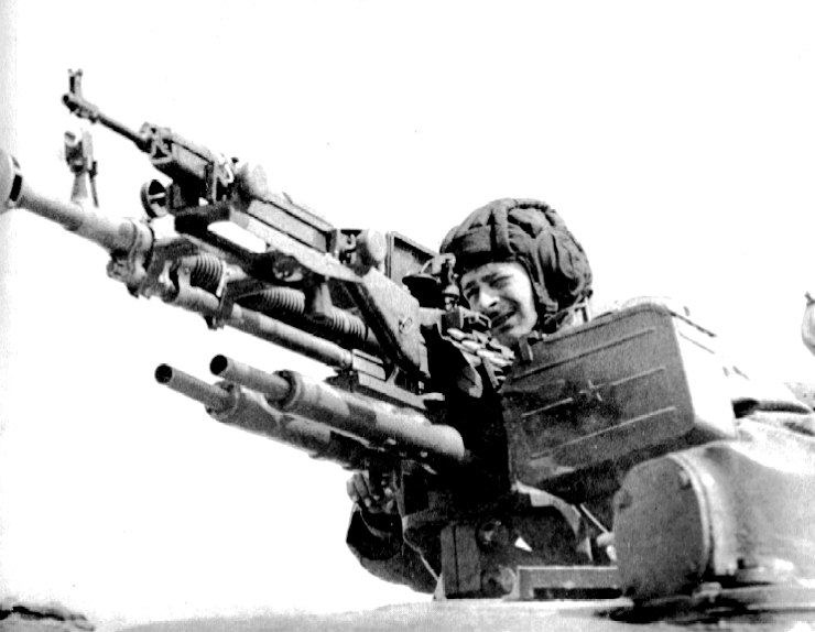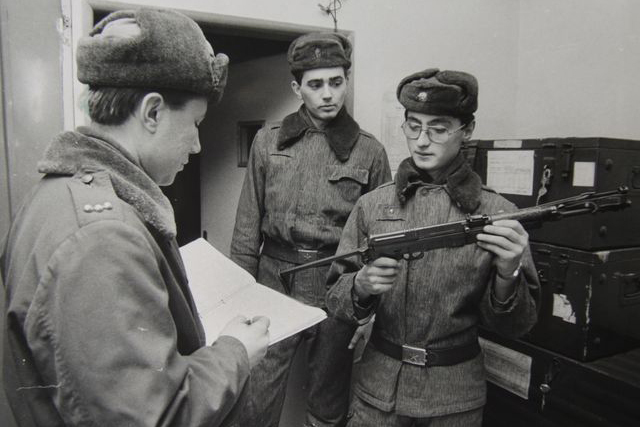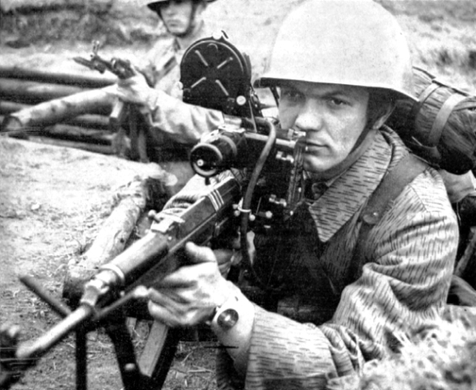 Militroncho Checoslovaco "samopalando" a dós manos. ¿Sería un ejercicio rutinario de tiro?, ¿será que se inspiró tras ver RAMBO II?. ¿en el bloque socialista, incluso en plena glasnost , se podian ver pelis tan brutalmente anticomunistas como RAMBO II?...Ehtoi con-fundiiido!!