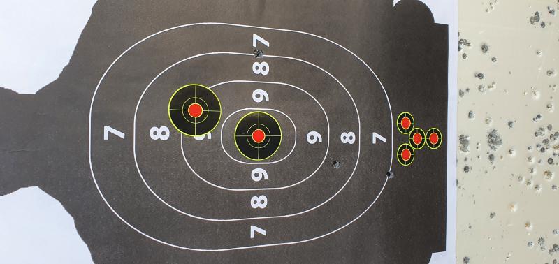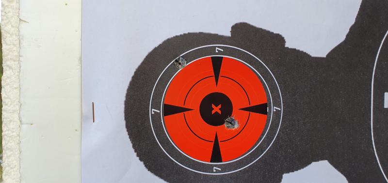 2 tiros, 1 entró cerca de X y el otro al 7, los 3 primeros restantes en la parte baja de la silueta, para centrar tiro.