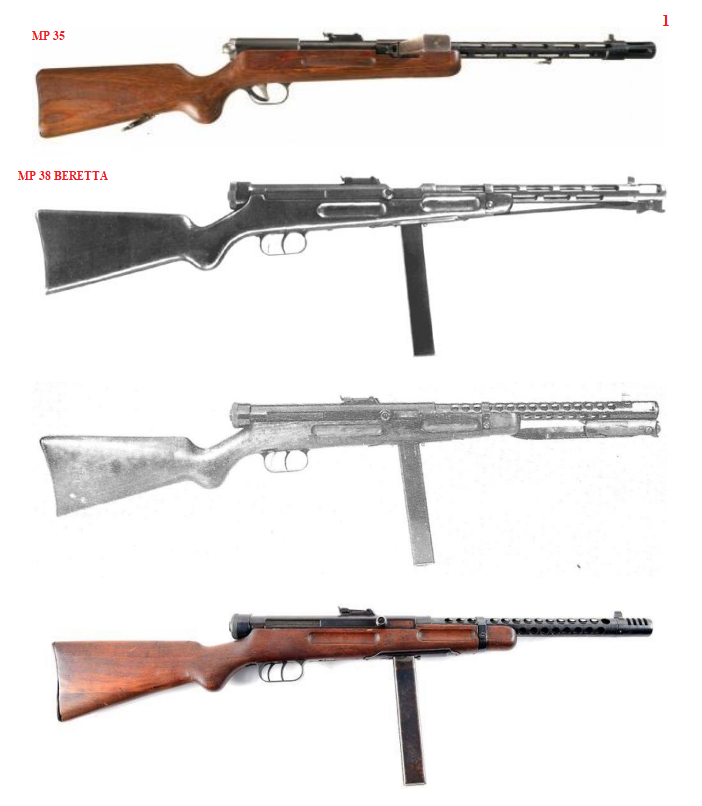 Para simplificar el asunto al subfusil alemán lo designaré MP35 y al italiano MP38.